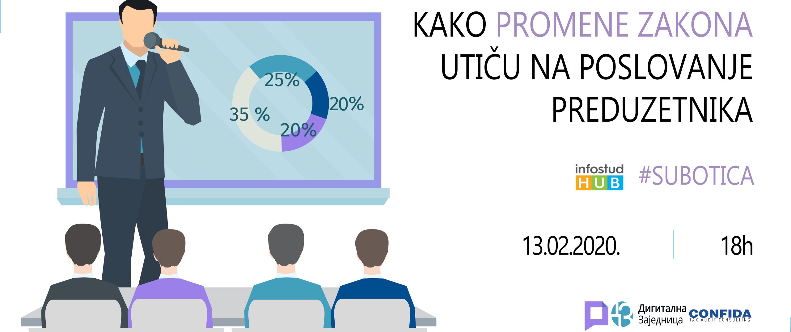 U InfostudHub-u će se, u četvrtak, 13. februara, u 18h, održati predavanje na temu promene zakona i kako to utiče na poslovanje preduzetnika.